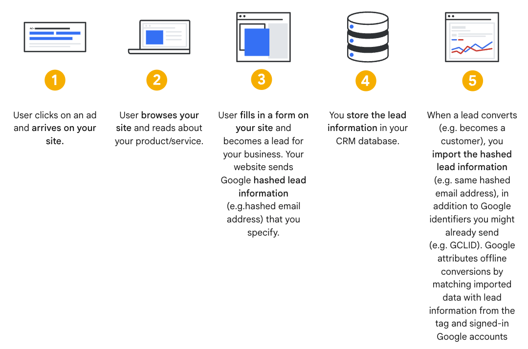 Enhanced Conversions for Leads 是对传统离线转化归因方式的升级。它允许您通过用户主动提交的第一方信息(如邮箱、手机号)来回传转化,并与广告互动行为进行匹配,提高归因命中率与报告准确性。