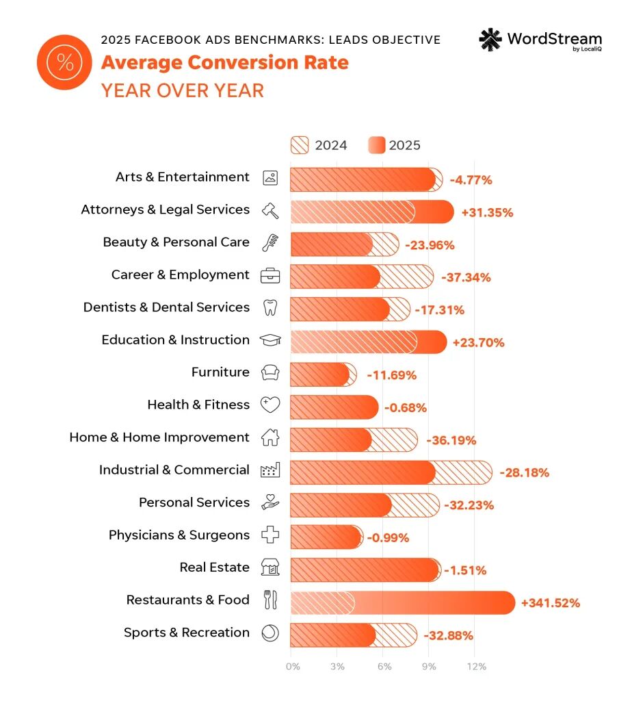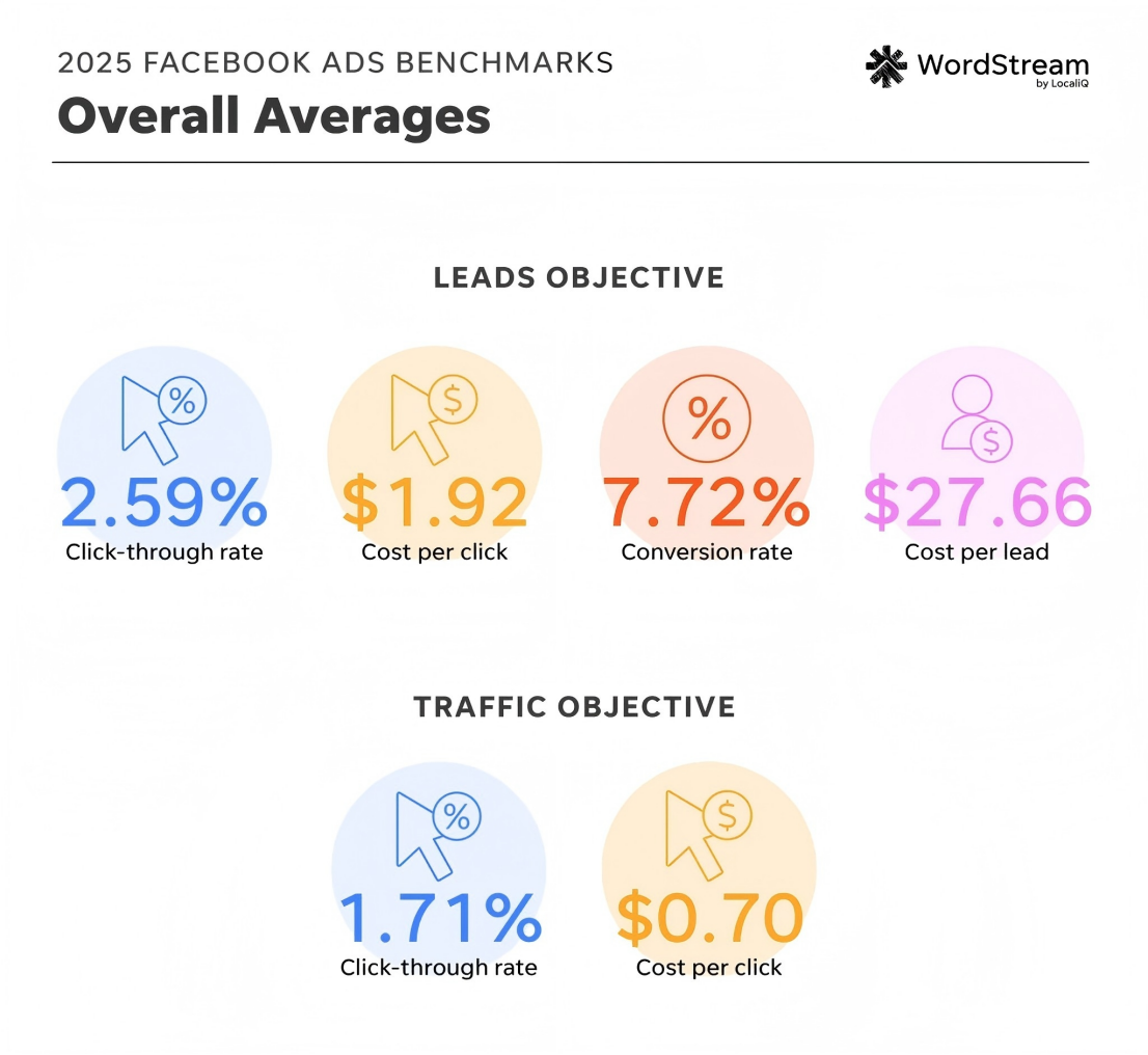 传送门:https://www.wordstream.com/blog/facebook-ads-benchmarks-2025