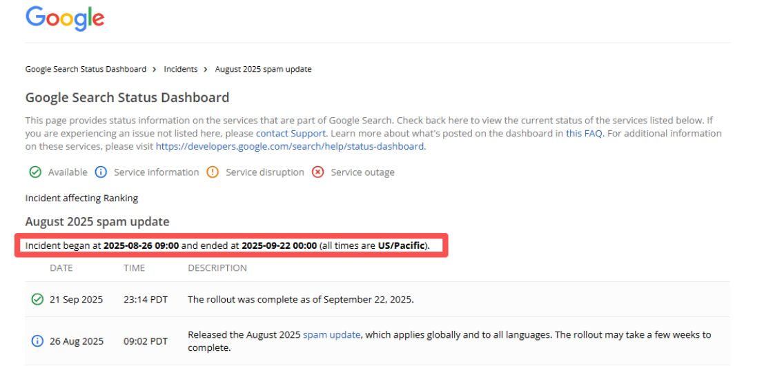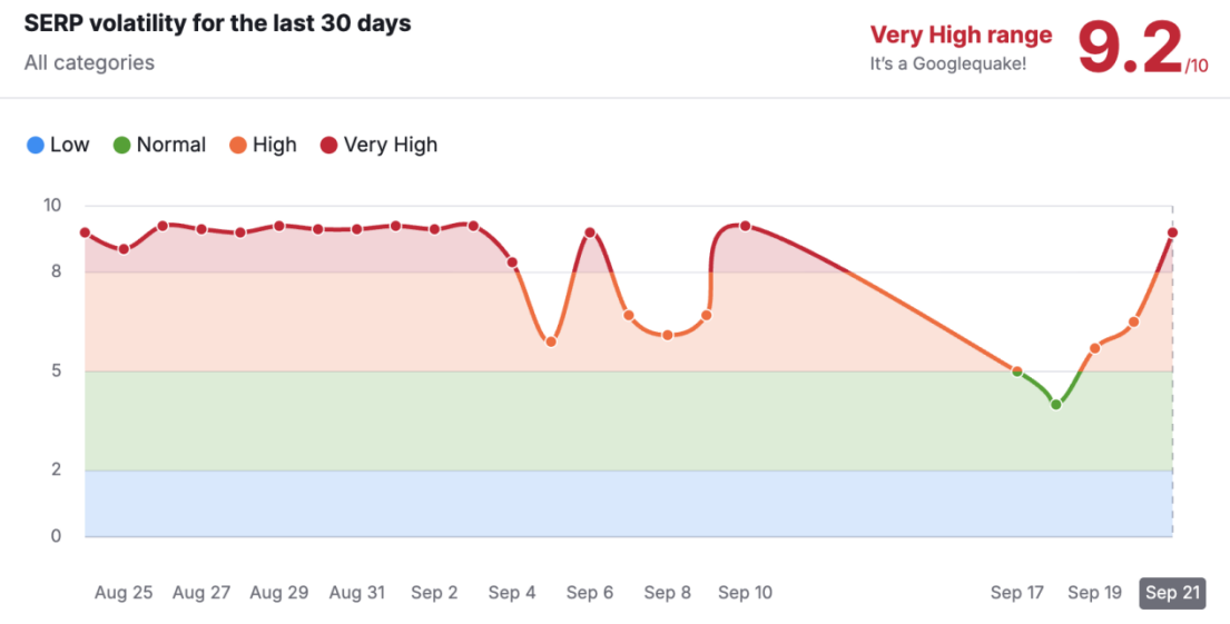 1、谷歌8月Spam Update历时27天结束,SEO工具跟踪到剧烈震荡。