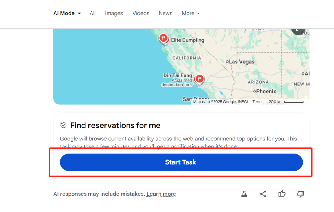然后谷歌AI Mode就会回复问是否需要“Start Task”