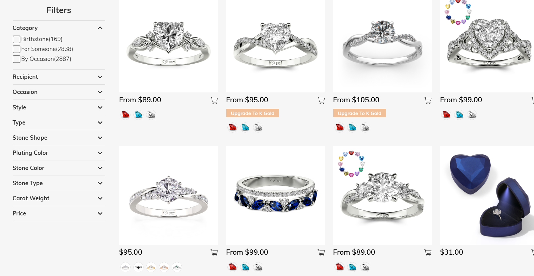 在风格划分上拒绝 “大而全”,如戒指品类细分为复古风、小众风、萌宠形等精准选项,适配不同审美偏好。