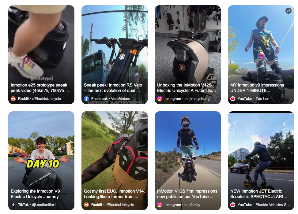 INMOTION 并不是为了借测评增加一次性曝光,而是把测评内容做成内容背书,并形成长期引用链。为此,深圳艾维在选择测评博主时,既看流量也看专业度,优先选择那些能做出数据化实测(坡度测试、续航实测)的博主,并提供统一的测评包(测试清单、数据记录模板、专属优惠码等)。