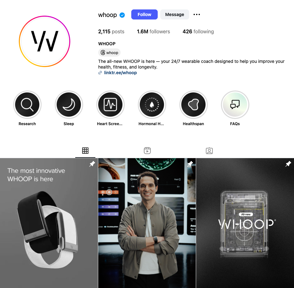 仅从社媒营销的层面来看,WHOOP的成功在于其通过社交媒体和内容策略,将自身打造成一个权威且可信赖的媒体品牌。