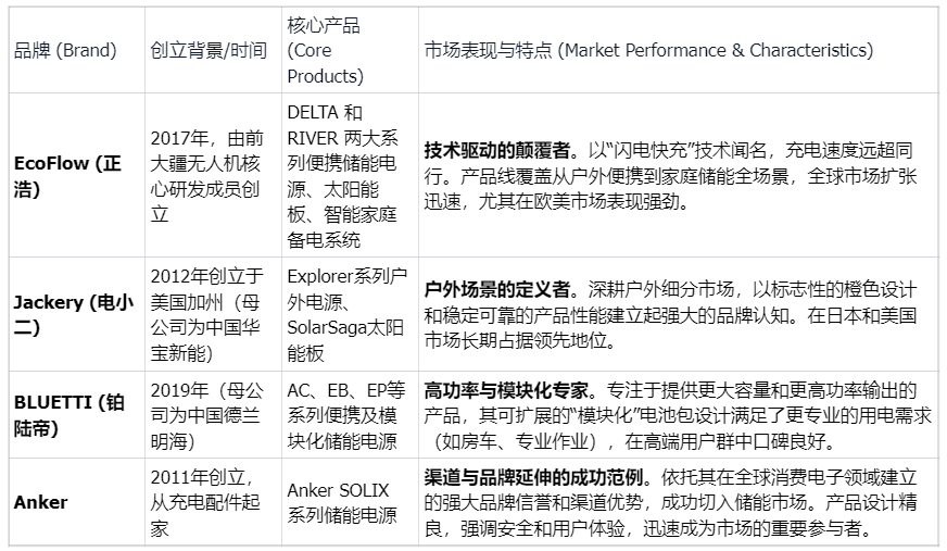 现在看美国、欧洲、日本这几个核心市场,便携储能早就不是小众品类了,竞争已经到了 “白热化” 阶段。以下是该行业中具有代表性的几个品牌,它们通过精准的定位和创新的产品,在市场中占据了重要地位。