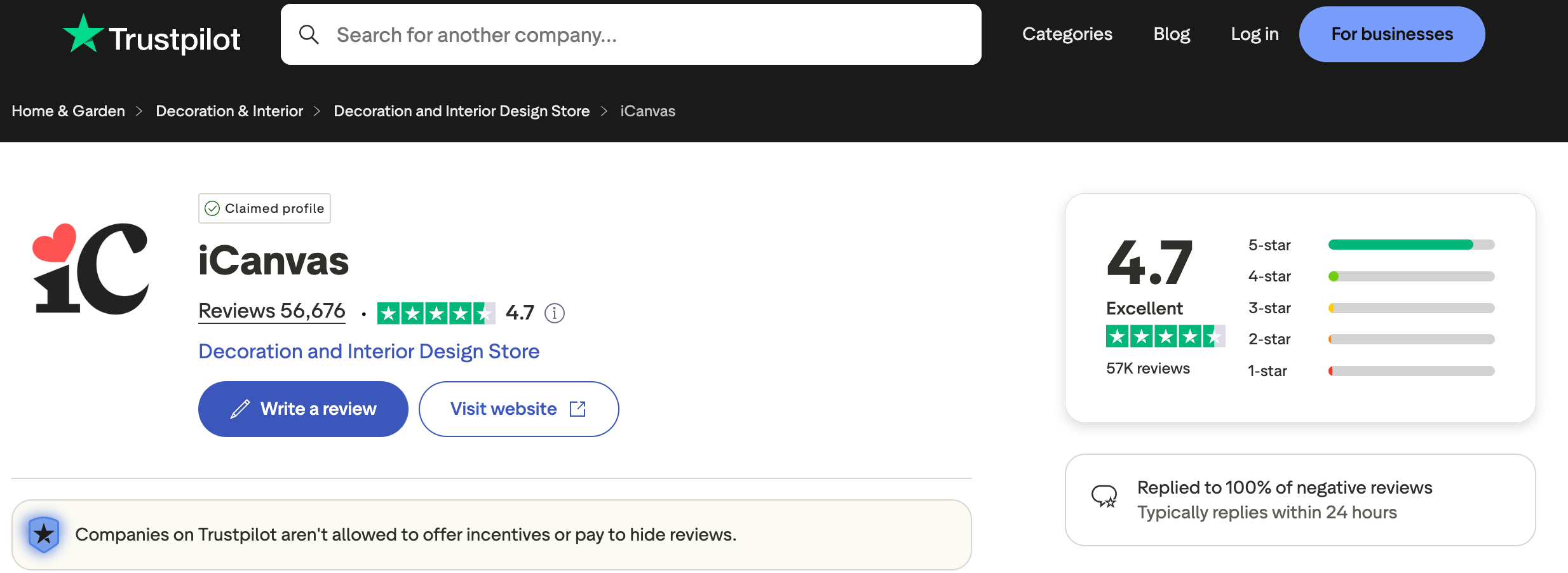 Trustpilot 上 56,600+ 的用户评价显示,色彩鲜艳、画质清晰、包装保护好、订单流程顺畅等正面反馈占主导,这种产品体验一致性为品牌积累了基础的口碑。