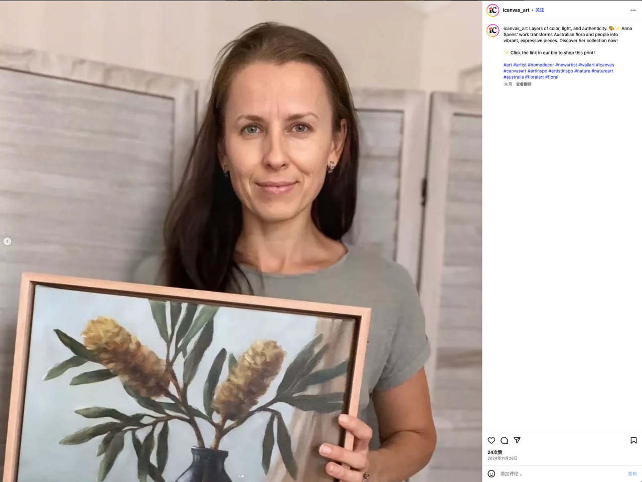 这些艺术家虽然名气不大,但却更愿意参与品牌共创,风格多元、成本可控,同时作品更容易贴合社交媒体内容需求。这样的策略为 iCanvas 打造了有温度、具传播力的品牌故事。