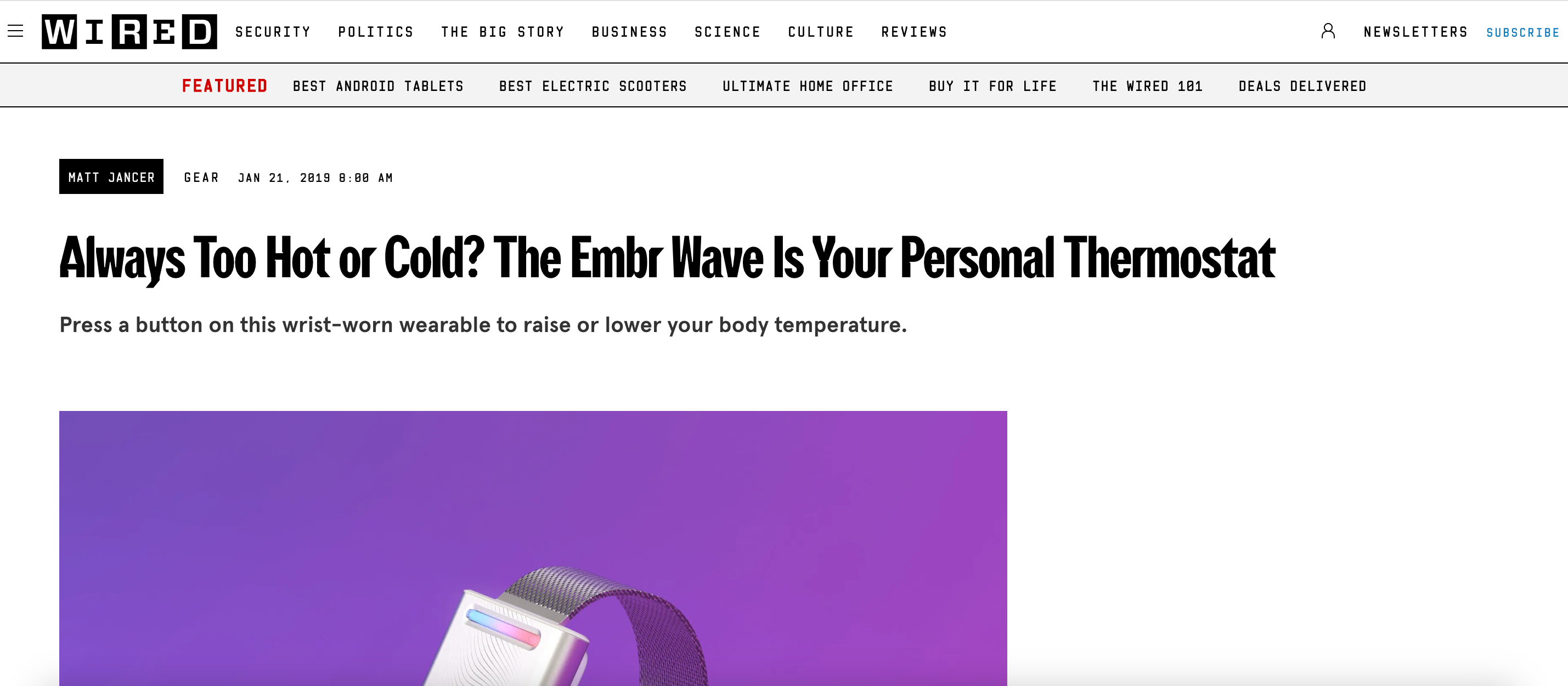 Embr Labs的产品并不是什么打破认知的未来高科技,你可以把它理解为一个可以发热、发冷的智能手环,但其背后的科学原理和应用逻辑却很有说法。