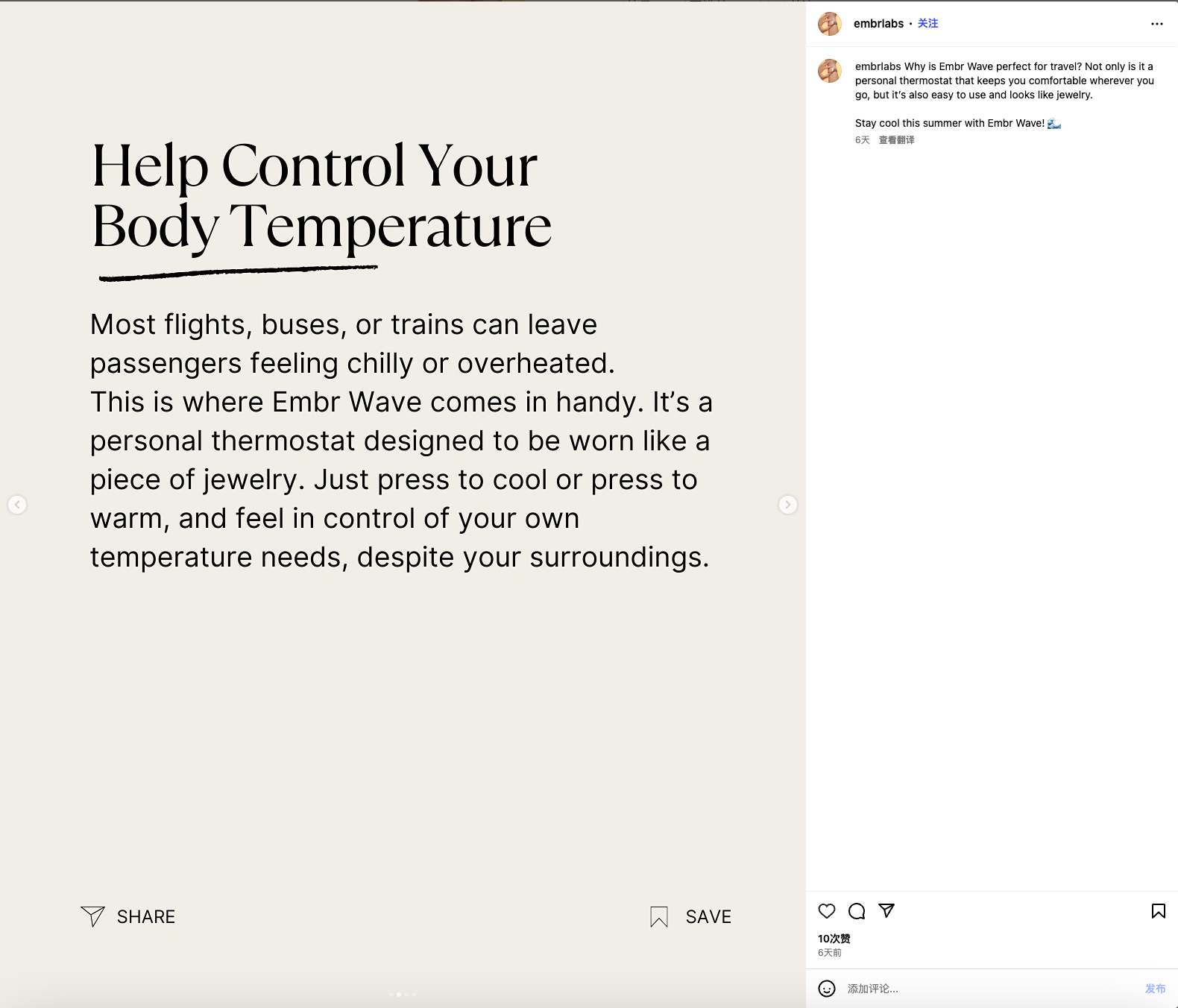 简而言之,Embr Labs 的社交内容运营是围绕“个人温控疗愈”建立的“品牌内容矩阵”——每一篇博客、每个短视频都是一次知识植入,每封通讯都是维护用户关系;而不是依赖用户“疯狂晒图”或一次刷屏传播。
