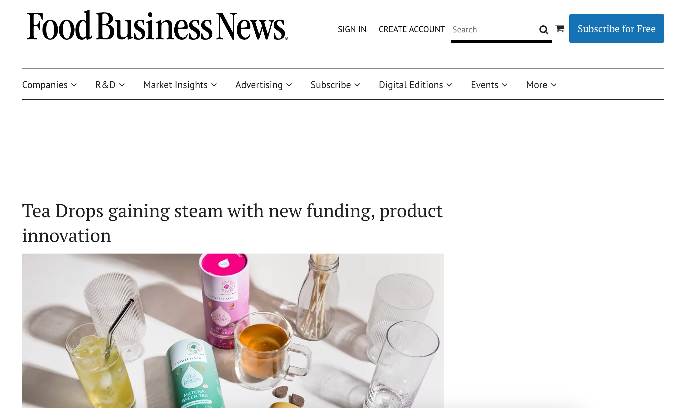 Food Business News 报道中明确指出,Tea Drops与Thirst Project的合作项目让14万人获取了可持续的干净饮用水