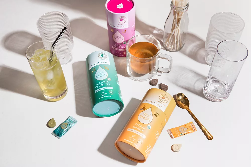 在产品口味上,Tea Drops 拥有多种混合款,如 Chai Spice(印度香料红茶)、Rose Earl Grey、Citrus Ginger 和 Matcha 等,既有经典风格,也有跨文化风味碰撞。
