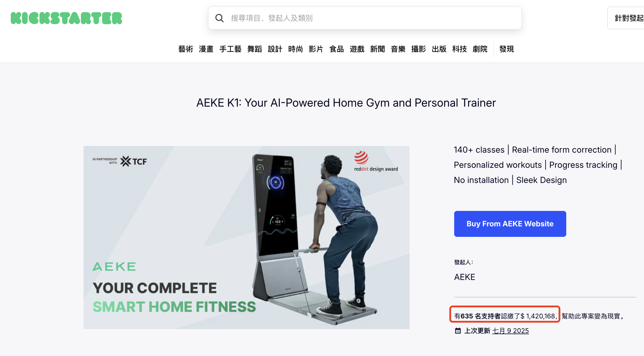而AEKE就是这样一个典型案例:它创立于 2021 年,专注将“大屏+智能动作识别+内容”组合成一个可在家复制的私教体验,推出以 Smart Home Gym K1 为代表的高端系列,并在 2024 年通过众筹迅速验证市场热度,单月众筹金额突破千万元人民币级别,显示出海外市场对高质量居家健身设备的真实需求。