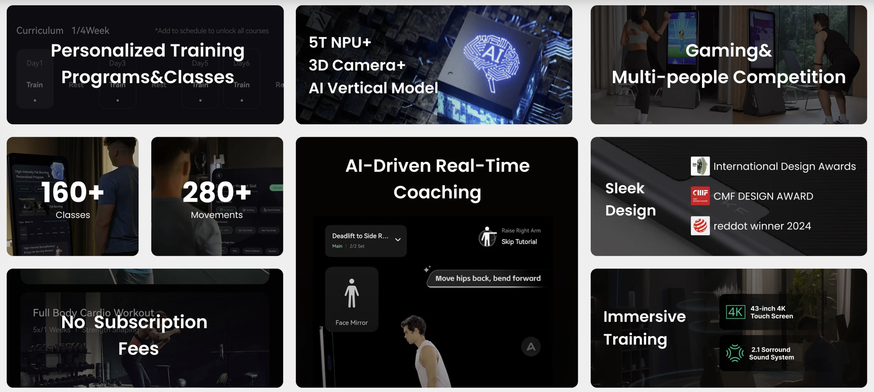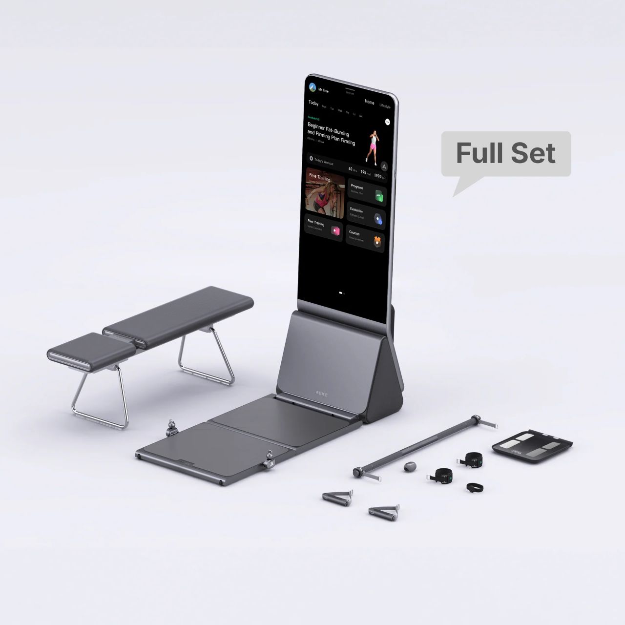 基于这一判断,AEKE把产品从单纯的“镜面大屏”延展为以力量训练为核心、辅以 4K 触屏、力控电机与传感器的整体解决方案。这样的设计带来两个好处:一是形成明确的使用场景(力量训练、普拉提等),二是可以在“非破坏性安装”的前提下,降低用户购后顾虑。