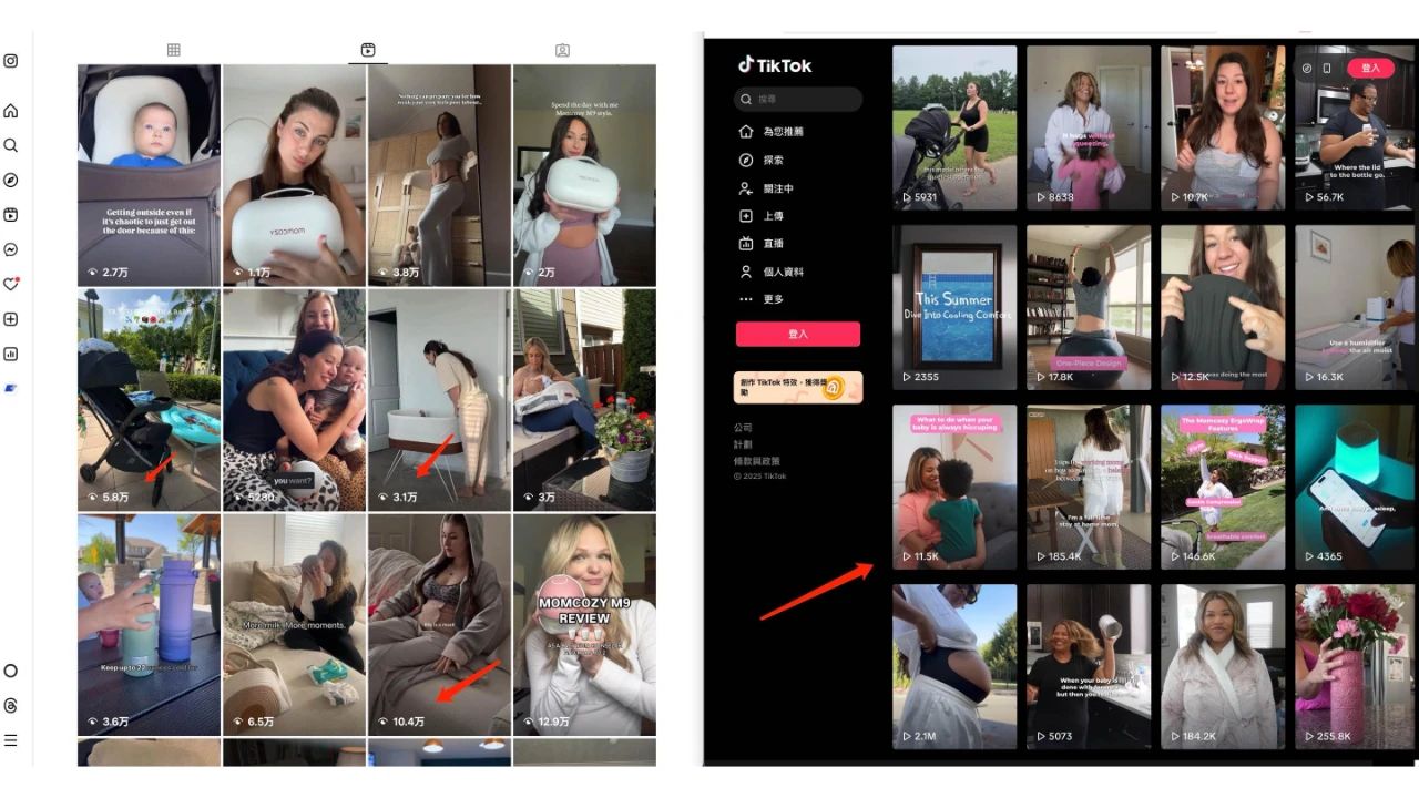 数据化的社交媒体运营:momcozy在YouTube、Instagram和Tik Tok等平台建立了强大的媒体矩阵。虽然他们在YouTube上仅有12.3k的订阅者,但总浏览量(lifetime view)已超过1000万次。Instagram上有37.6万粉丝,Tik Tok有34.5万粉丝,其中Tik Tok上曾有一段视频获得了210万次的播放量。