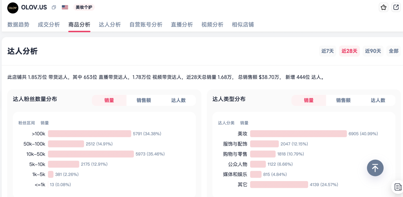 更值得关注的是,其合作达人矩阵中,近2w万名腰部创作者成为核心推手。