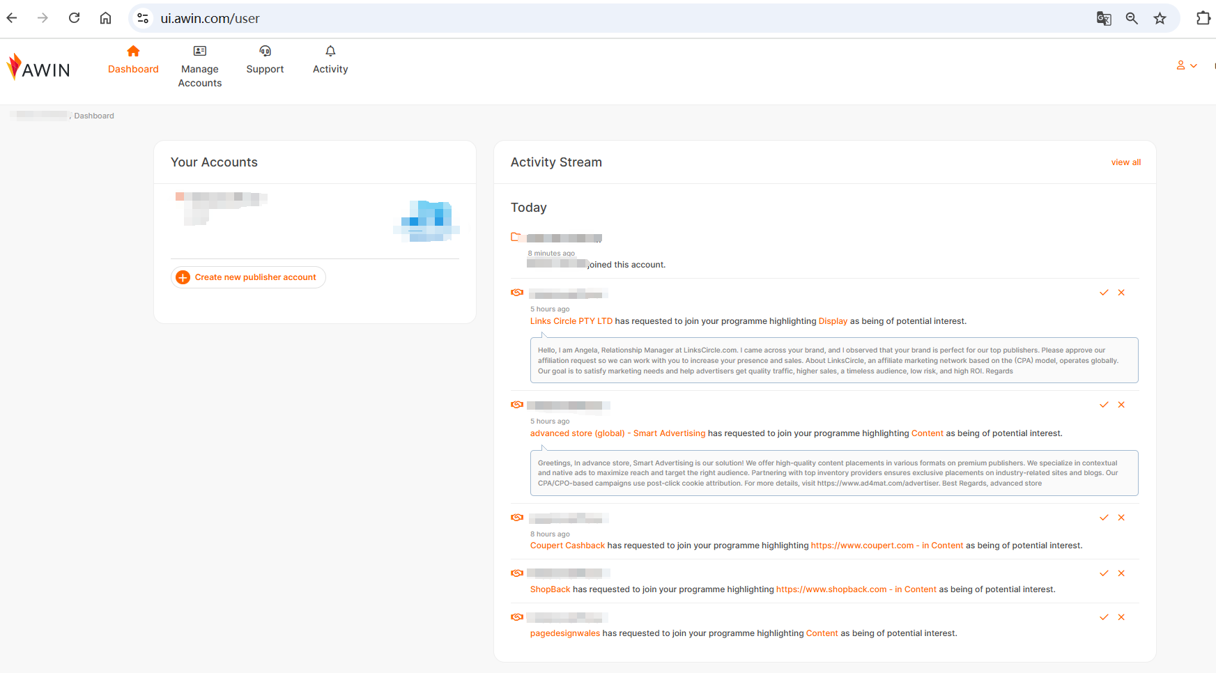 核查确认了联盟平台ShareASale上的联盟客都已经自动迁移到了联盟平台Awin,活跃度高不高暂且不说,至少都到齐了。