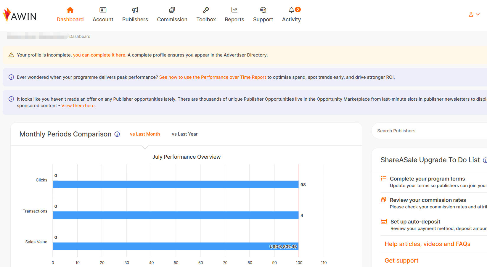 迁移开始后,直到19号早上我才再次成功登陆联盟平台ShareASale,这熟悉的深蓝色看着真的舒服,希望保存更多它存在过的痕迹。