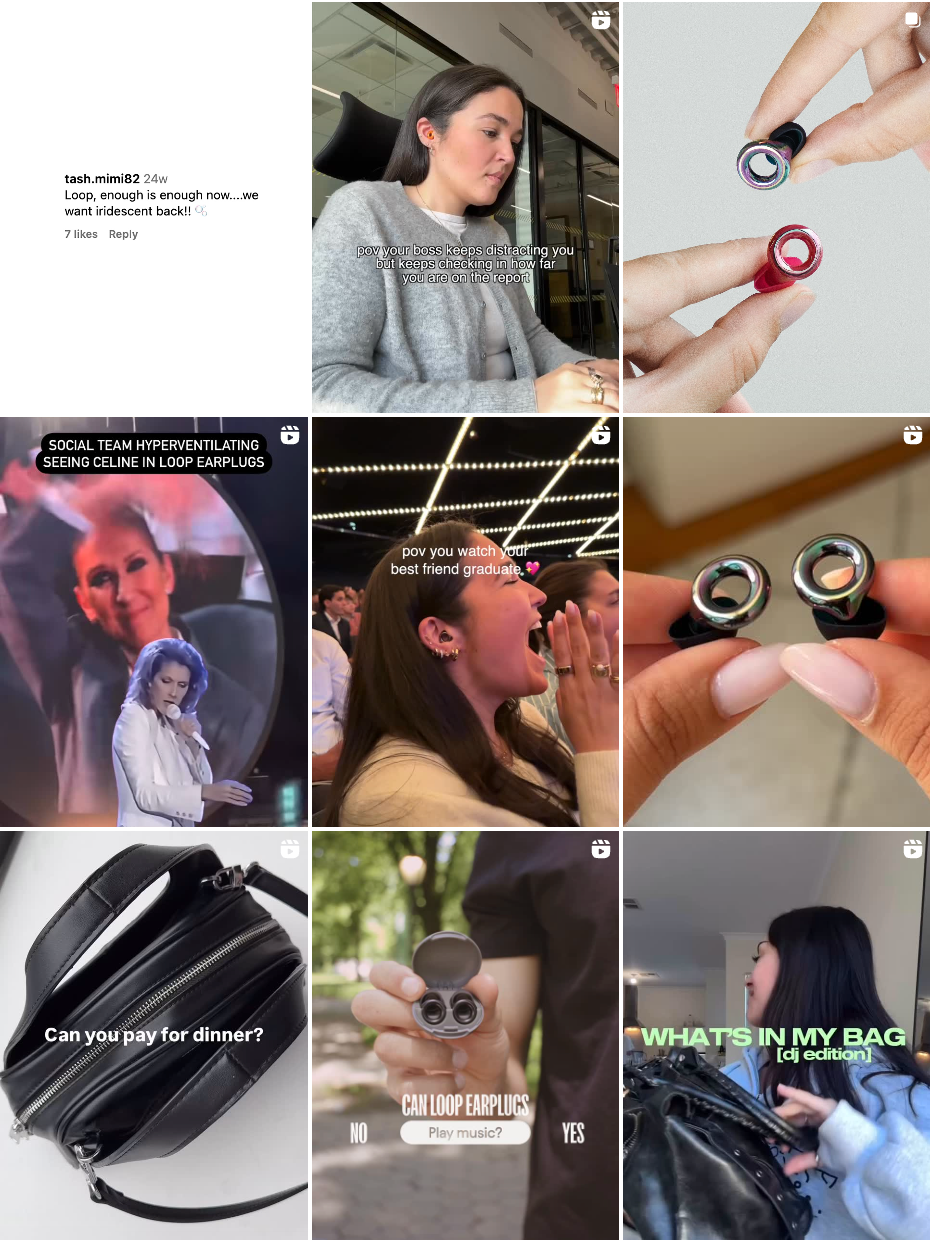 但内容的方向却很一致,基本都是以“节日现场对比”、“佩戴前后音量差异”短视频形式,让用户在 10 秒内直观感受 Loop 的“听得见的降噪”理念。