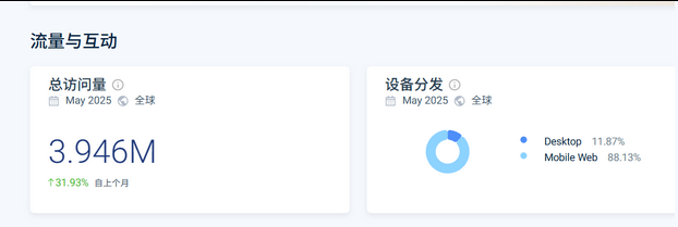 网站流量竟然能做到近4百万(当然similarweb的数据有水分)