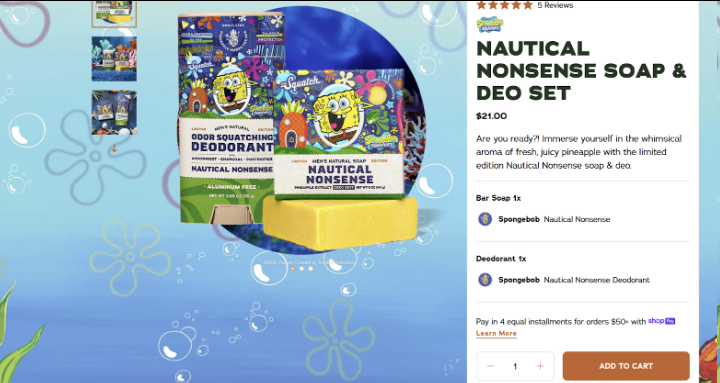 像他们最新跟海绵宝宝的联名款产品页,整个背景都是海底,而且里面的元素也是跟包装呼应的,这些细节真的太内行了!