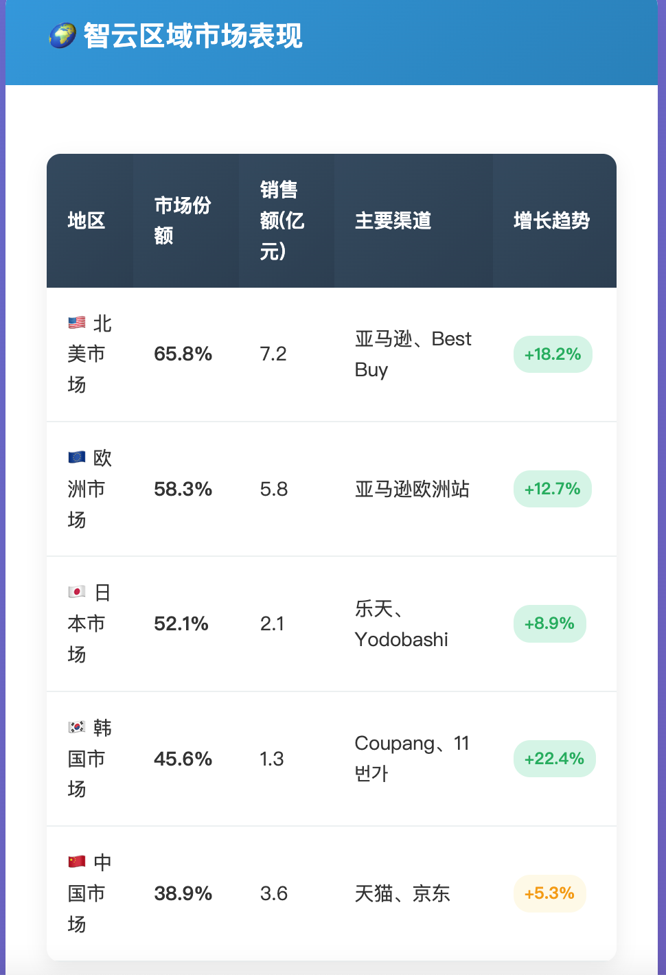 这一稳健增长曲线印证了其全球化战略的成功实施。在全球市场布局方面,智云已建立起完善的销售网络,产品在欧美主流电商平台表现尤为突出。