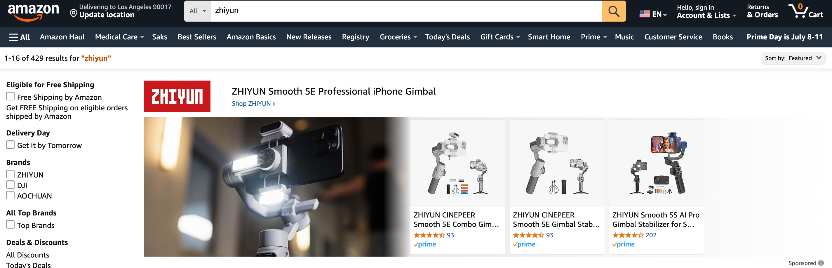 2017年入驻亚马逊后,智云仅用一年时间就实现200万台的销售佳绩。2018年,品牌在亚马逊平台的销售额突破3500万美元,占据稳定器品类60%的市场份额。Smooth Q、Smooth 4等明星产品多次登上亚马逊美国站和德国站的畅销榜榜首。