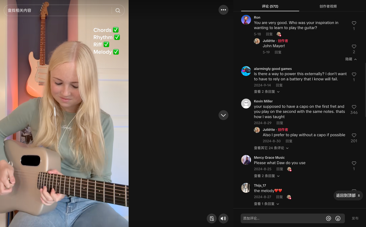 在具体的合作视频中,Juliette没有外接踏板,也没有进行后期制作,纯粹是利用了 LAVA ME 4 的内置循环功能,叠加伴奏、和弦与旋律,自然地表现出了循环录音的魅力。相比传统录音方式,她的演示不仅动听,更展现了这把新款吉他的即兴创作能力。