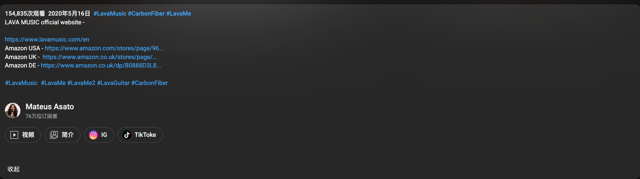 2018年,Asato在其Instagram与YouTube频道发布的一段LAVA ME弹奏演示,不俗的功底让LAVA ME的材质和音色得到了重点展示,收获了15万的播放、8556次点赞和262条评论,数据反馈和互动质量都非常在线。
