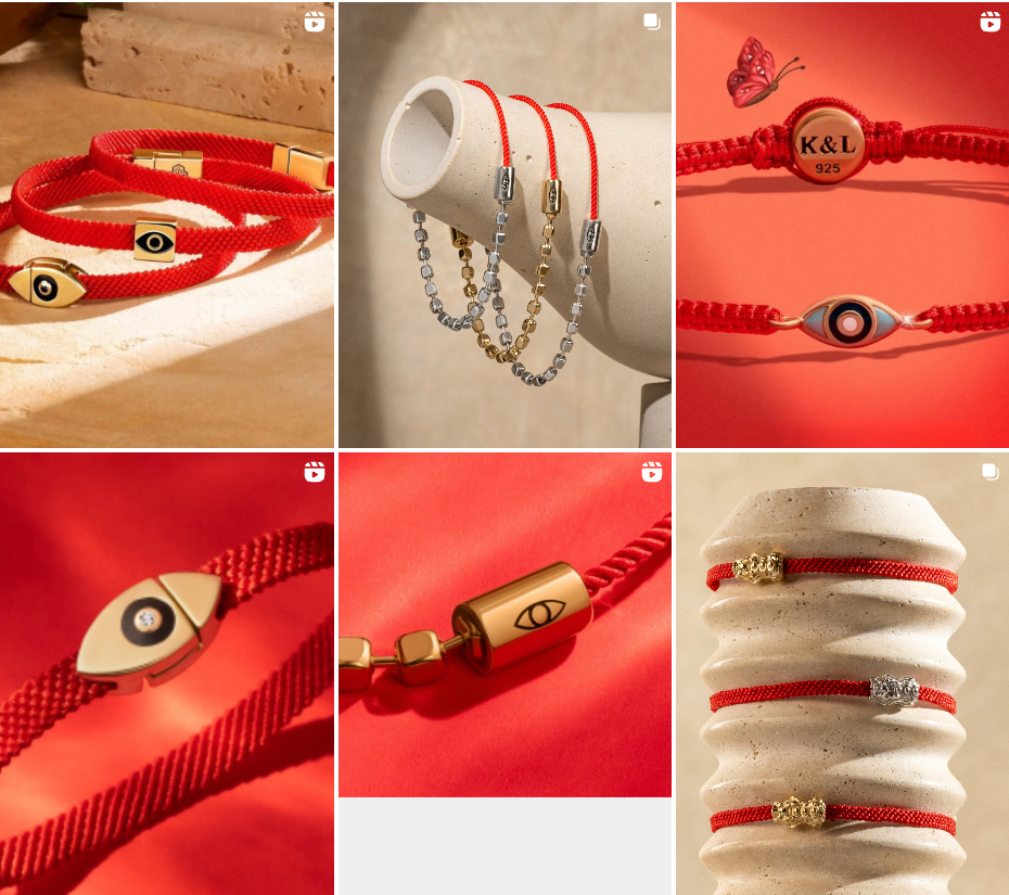 仔细观察Karmaandluck的社媒账号,我们就能发现该品牌虽然也是卖玄学首饰的,但整体感觉却和传统的珠宝品牌 相近。精致的布景和灯光角度,无一不在强调产品的美学价值。