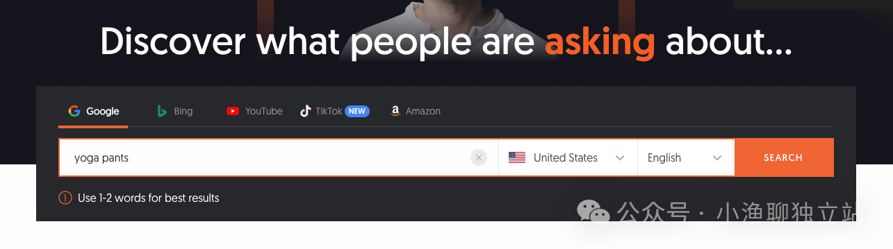 其实能用好上面的两种方法,就基本能应付绝大多数工作场景了。但我觉得还有一个工具(AnswerThePublic),不得不介绍一下,用起来还不错。