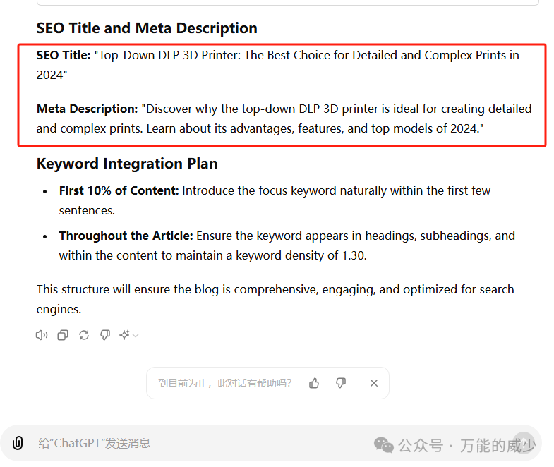 也可以直接上命令,给完后上传你的文章给Ai,让它帮你生成标题、链接名、元描述等:
